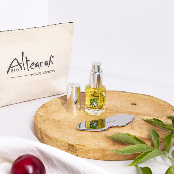 La Routine Repulpante Visage est un rituel complet d'oléothérapie composé d'une Huile de Massage Visage et d'un Gua Sha en métal. Ce rituel aide à repulper, lisser et illuminer la peau tout en relâchant les tensions du visage. Soin quotidien sensoriel et efficace, la Routine Repulpante Visage offre un moment de bien-être profond tout en apportant éclat et tonus à la peau.